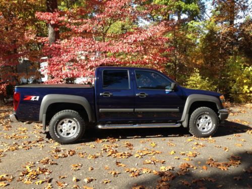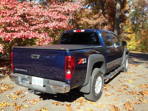 2007 Chevy Colorado Crew CabZz71 4x4 89000 miles Small tear in backseat pocket behind passenger seat-(See Picture) Color is navy blue Professionally tinted windows-legal tint Black cloth interior Power everything Factory fog lights Brand NEW BFG All Terrain tires 31 10.50 15s Reese Towing Hitch Tri Fecta Bed Cover 6 Disk Factory CD Player Husky Liner Front Mats Garage kept Alignment just done with NEW tires Transmission just flushed and serviced All Synthetic fluids |