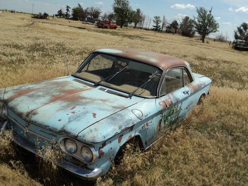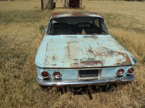 1963 Chevy Corvair, 2 door coupe with a 3 speed on the floor. This is a project car. It has engine and transmission and was running when it was parked 10 years ago. I do not know the actual miles at this time. I do not have a title but can give a bill of sale. If I can't sell I will take it to scrap iron. Buyer is responsible for pick up or shipping costs.