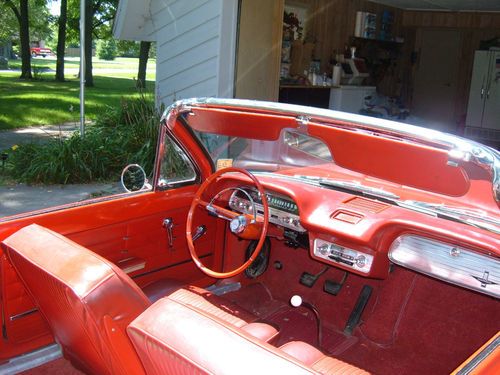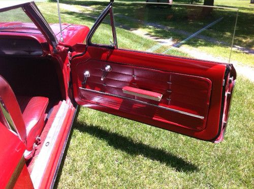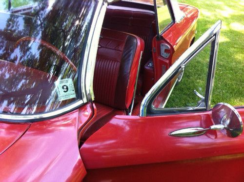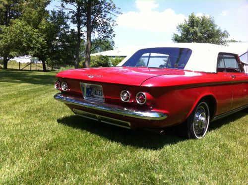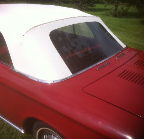This 1963 Monza 900 convertible has the 102 HP engine and 4 speed transmission. The car is a very nice low mileage original (never been restored), but has been kept operative continuously since 1991 and driven, however little, each summer since purchased. I purchased this car in 1991. At that time the odometer indicated approx. 42,000 miles. The cars condition was similar to that of today. The currant reading (43,242) represents the actual miles I've driven the car since the purchase. The tires shown are the original polyester cords. Included with this sale is a set of new steel belted radials mounted on 13" Corvair wheels. All accessories work (AM radio, windshield wipers/washers, cigarette lighter and all lights) except power top mechanism. The folding top operates manually, but came with the power top option. It needs the motor, hydraulic pump and lines (lift cylinders are still in place). Top-down pictures were taken before new top was installed in 2011. New top has never been down. There are some scratches in the paint (no dents) and some rust on the right rear fender and the left rocker panel and the front-passenger side floor has been patched prior to my purchase. Engine compartment has not been detailed as pictures indicate, but the car was made mechanically sound 500 miles ago by a Corvair specialist.