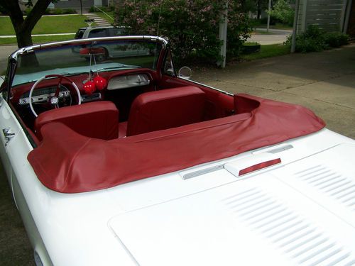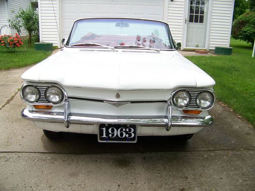 1963 red Corvair Monza convertible, I am 78 yrs. old and spent a lot of money on this car. I had a stroke need to sell. I bought car about 3 yrs. ago to drive around my small town,parades and a few car shows. Was told by dealer when I bought the car that engine and trany was rebuilt. Has good recent paint and good top, not real white like most. Has new dash pad, all new head light and tail and back up light bezels. Tail and back up lights are new with 1964 lens and trim. Also has 1964 trunk trim, I have 63 trim in good shape. I just think the 64 looks better. Has a new $350 red/white steering wheel which sets the interior off. Has new Fisher door trim. New am/fm radio with disc player. Almost new tires with wire two spinner hub caps rust free. Seats and carpets are as nice as you will find. Has new dual exhaust , clean engine with new battery. Clean trunk with new scissor jack. Make a nice evening cruiser call or call shows.