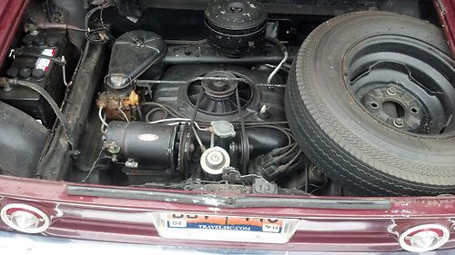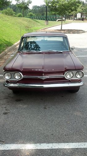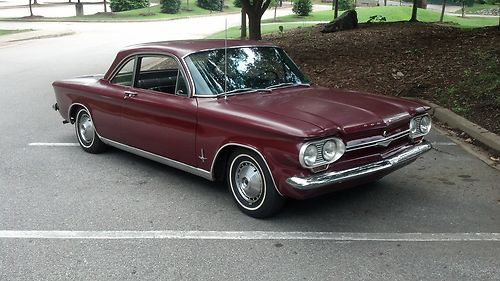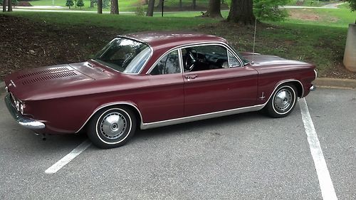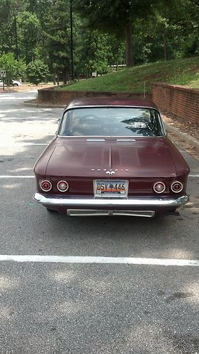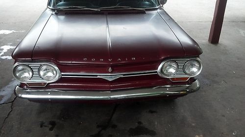 This is a 1964 Chevrolet Corvair Monza Club Coupe that is burgundy in color. It had one owner for over 49 years after being bought from the dealer brand new. Under coating was put on so it would remain rust free. It has been kept in a storage shed and has 74,500 miles. The engine is smooth running and the muffler has a good sound. The tires are in good shape but not exactly sure of the age of the tire. It is a 4 speed transmission that is very sweet shifting. It has had one paint job and the current paint is 25 years old. There is some bubbling in the paint in certain places and one place on the passenger door has some small spidering along with a quarter size bubble that has cracked open. This spot is shown in the pictures. That being said, the car would not need a paint job unless it is going to be a show car. A new headliner was recently put in, and the car has new brakes and brake liners. Everything on the car works well except the horn will not sound and the passenger door will not lock. The AM radio on the car and the original light on the inside of the car still work fine. In some of the pictures you will see water drops. This is only because the car was just washed. This car is a blast to drive and is one truly beautiful car. Full payment is expected within 7 days of the purchase and the buyer is responsible for either pick up or shipping and shipping costs. Any questions feel free to ask.