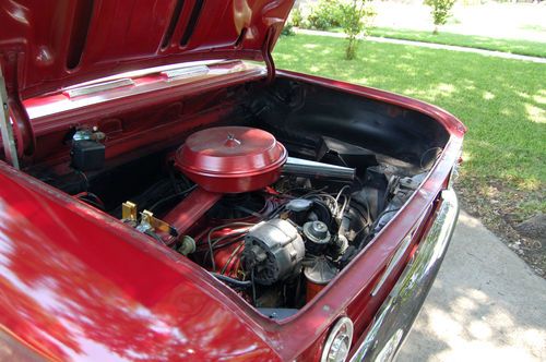 This cute little car was traded to me for another car, starts right up and cruses down the road no problem. It didnt have a top, so a new one was installed last week. All glass is there, all windows roll up and down without issue. Drips a few drips as any car of this age does. Drives stright, shifts smooth and is responsive to acceleration. The battery compartment in a couple small spots is the only place where I see rust that penetrates through the metal. Does not smoke when engine is running and brakes seem to be strong without any grinding. If you have 0 feedback, contact me with your name and phone number BEFORE bidding or your bid will be removed. $500 non refundalbe deposit required within 48 hours, and the Corvair must be picked up within 2 weeks after auction ends. All arrangments must be made by the buyer and at the expense of the buyer. Feel free to call me at 972- nine 65- six 6 seven five with any questions. Tony
