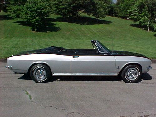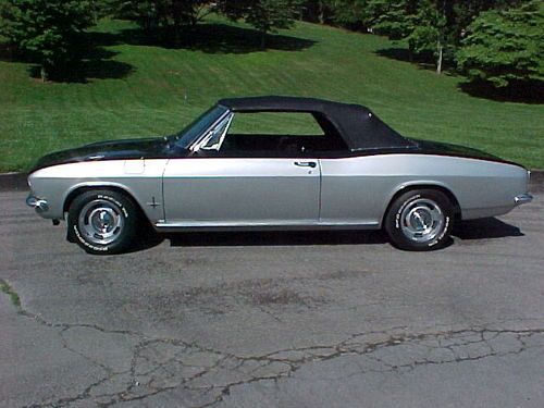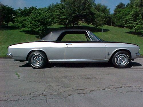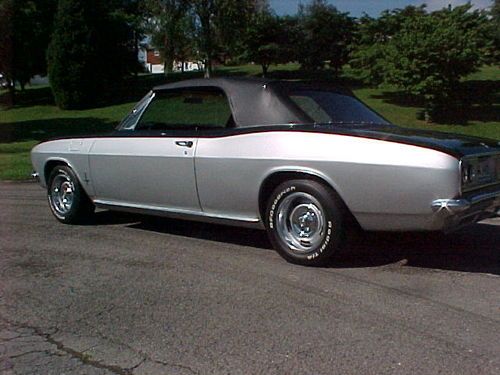 1966 Chevrolet Corvair Monza Convertible, 110 engine, 3 speed manual transmission, power electric top. runs, drives, and shifts good. Body work finished about 2 years ago, painted about 1 year ago. Any rust found was cut out and metal welded in. Lots of new parts installed within last year or so including new top (not a cheap $200 top either, but a good quality one) cost me $950 just for top, new convert. top cables, new top boot, new upholstery on seats, new carpet, new rear side panels, etc. Tires are like new BfGoodrich T/A radials 215-60 14 on newly painted 14x7 rally wheels, new weatherstrips on engine lid cover and trunk cover, new engine lid "110" emblem, new front fender "Monza" emblem, 2 new tail light lens, new outside chrome door handles, new door locks, new master cylinder, new fuel pump, new carb fuel filters, new coil, new distributor tune up parts, new plugs and wires, new battery, new arm rest bases, Corsa gauges and shifter base, speedo, tach, and fuel gauge work, manifold pressure gauge and cylinder head temp gauge never hooked up, new rear nylon strut rod bushings and strut sleeves, new clutch adjuster, new glove box lock assy, new steering wheel adapter, etc, etc, etc. I am sure I haven't listed everything that has been replaced, but this gives a good idea. The red pin stripe is paint, not just some cheap sticker, but was painted first, then other colors painted and whole car clear coated. There are 3 coats of color and 4 coats of clear that was applied when painted. Paint is very nice as shown in pics, but it is not perfect. There are extremely few, if any, perfect paint jobs out there. There are a few things that I never got around to, for example, never put on new door seals or seal across front of convertible top that seals against top windshield frame, radio either isn't hooked up or doesn't work, front trunk lid needs a new lock put in (I may have one, just haven't got around to it), have not installed sun visors. I have them, think one needs re-upholstered, but I have both and will go with car. Really hate to sell, but I am buying some land and need the money for that. No trades. Car is located in Somerset Ky. 42501. I have car listed locally and reserve the right to end the auction early for any reason. Please come look at and drive the car before bidding. Winning bidder to pay non-refundable $300 deposit via pay pal and rest in cash at time of pick up. If not picking up in person, payment to be made by certified bank check and car will not leave my possesion until I have proof from my bank funds have been transfered. I prefer winning bidder to pick up in person, but if needs to be shipped, shipping costs, set-up, etc. will be paid by and set-up by winning bidder. Feel free to call me with any other questions at 606-two one nine, 5590, but remember I am on eastern time zone so call at an appropriate hour please.