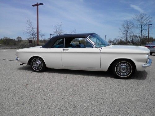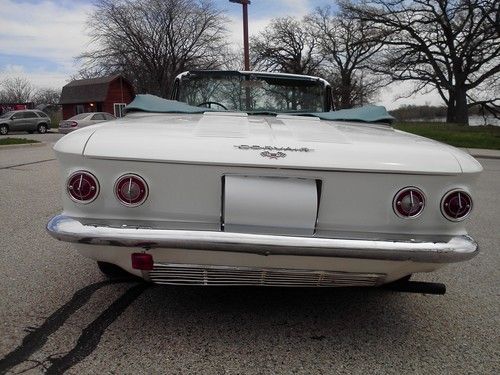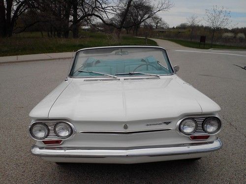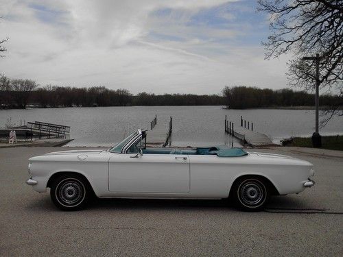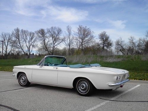 2 door Monza 900 Chevy Corvair. Very good condition. Teal interior in excellent condition. Black ragtop in perfect condition. Rear window perfectly clear. No rust. Garage kept (under a cover). Never goes out in rain. Runs great. I have owned this vehicle for 14 years. I accept Pay Pal. Please feel free to contact with ANY questions. Exterior color is white.
