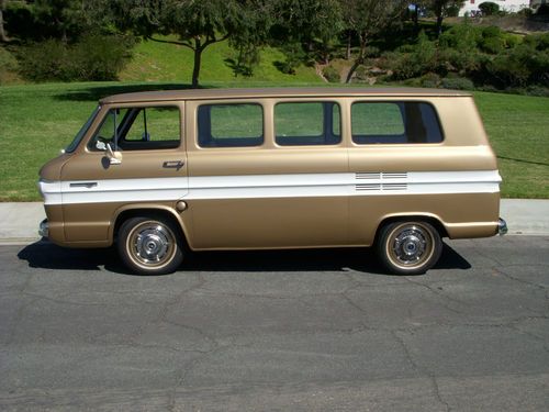 Rare 99% restored 1965 Greenbrier Deluxe van. On of only 1,528 produced in the final year for the Greenbrier! Correct replacement 110 HP block. Balance of drivetrain is original and rebuilt, including Powerglide transmission and differential. Replacement Clark interior in original gold color. Exterior color was a unique factory original special order. Took months to figure that one out! Vehicle was originally sold in Colorado, second owner in Florida where I purchased it. For a detailed look at the restoration please link to the following: http://www.corvairkid.com/R1265S100889.htm . Remaining work to complete restoration includes replacing the aftermarket windshield rubber (doesn't fit and left a gap on the upper passenger side, stripping off the interior roof insulation (surface rust that I should have dealt with during restoration but discovered afterwards), the fuel gauge can be temperamental and operates intermittently, and there is a very small hairline crack in the paint just below the driver's outside mirror. Other than these small improvements, the vehicle is a one-of-a-kind restored example of the rarest of Greenbriers. Mileage shows low (original dash assembly), but I assume the vehicle has turned over once. A beautiful vehicle for someone who understands the uniqueness of a special order 1965! The reserve price reflects that but is well below the restoration costs. Your questions are most welcome!