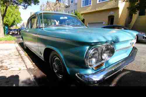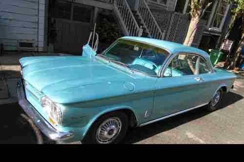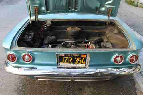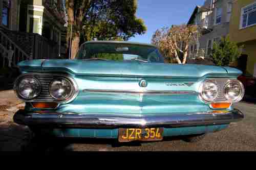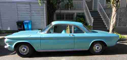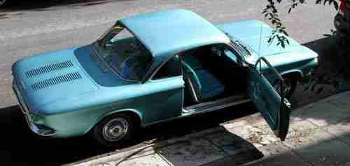This Corvair along with our Mustang are our two family treasures. Because of lack of space, we have to make the choice to part with one of them. So we are selling the Corvair that my mother bought brand new in 1963. She used it time to time for small trips to and back from her school where she was teaching, less than a mile away. Most of the time the Corvair just sat in the garage. The mileage on the odometer 25,500 is the original mileage. The car hasn’t even been out of the Bay Area of San Francisco and has probably never gone more than 20 miles from home. It is all original, the exterior, the interior seats, carpet, and dashboard. The engine however and the carbs have been updated. And just recently we put in a new battery. I can push it to 80 miles/hour on the highway. It has some rusty spots on the exterior and one dent, the size of a spoon head created by my Dad’s shotgun that went off accidentally in the garage while he was demonstrating that it wasn’t loaded! With today’s cars, the ammo would have gone right through. Among the minor works that need to happen: the engine oil leaks, the oil cooler needs some fixing and a new muffler. That’s about it. The Corvair is as solid as a tank and justed turned 50 this year! We just hope the lucky second owner will cherish this Corvair as well as we did.