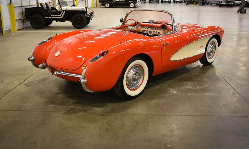 The Chrome accents make the paint jump out from the crowd, and the red interior to match makes a seamless transition between the inside and out. As you open the door and slide into the driver’s seat, you will be taken back in time by the two-tone dash, chrome accents, and the large steering wheel that came stock back in 1957.