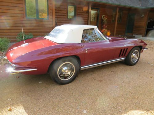 For Sale: 1965 #'s matching Corvette Convertible. The color is MIlano Maroon(burgundy) with white convertible top and black interior.