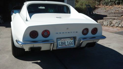 This car came from Virginia to California about 17 years ago. The car sat for 11 years after the move to Ca. Over the last 3 years the car has been driven on weekends during good weather. The car runs well (motor, tranny, rear end, brakes, etc.). The compression is good, up to factory specs when checked 2 years ago. The outer ring on the harmonic balancer has spun, so the timing mark is off. I don't know if the motor was ever out, if it was it was along time ago. It still has the solid lifters and the cam sounds correct, nice lope at idle. With 11.00:1 compression you must run 100+ octane otherwise it detonates under load. 112 Sunoco worked well. The car still has TI. The car has PB and the front calipers were rebuilt to factory specs. The frame has surface rust but is solid, no issues near the arches. The rear trailing arm pockets are also solid with no cancer observed, surface rust only. The car was painted at some in the past not sure when but 20+ years ago. It still looks ok 10' out but does have chips here and there and the spider webs on the front fenders as is common. When the drivers side coil spring collapsed, it tore a strip of fiberglass at the top of the wheel arch when the tire hit it. Its not bad just want to disclose it. The chrome is 43 years old and although not great it is not pitted. The radio is AM/FM and works. The electric windows work, the drivers side window has to be helped up and down due to an issue with the regulator. The car has fiber optics and per normal some work. The temp gauge is not working. The car has headers, no air pump (obviously). Lights work as well as blinkers etc. Wiper door works, wipers do not. The speedo shows 105,000 miles but the speedo only works intermittently. No paperwork, i.e protecto plate, build sheet. There is a tank sticker visible to the left side of the filler neck. It is there but I'm not going to try and get it out. The interior is good for 43 years there are no tears. The drivers side seat of course shows the most wear. For some reason there are no backs on the seats. The car comes with some additional resto parts, mostly trim screws and 4 of OEM "coolie hat" wheel covers. I have the OEM air cleaner top also. The oil dip stick tube is broken and I do have a replacement.