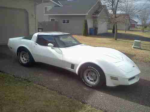 1981 CHEVROLET CORVETTE. ALL NUMBERS MATCHING 350 ENGINE 350 TURBO HYDROMATIC AUTO TRANSMISSION. 89,000 ORIGINAL MILES . ARCTIC WHITE WITH SUPER RARE CINNIBAR CODE 67C CLOTH INTERIOR (ONE OF 129) ALSO RARE GM FACTORY AM/FM CASSETTE STEREO W/ FACTORY BUILT IN CB (ONE OF 2,349) ALSO IT HAS A RARE FCTORY PROVISION FOR A T-TOP RACK BUILT INTO THE BODY(V-54 CODE 1 OF 3,303) THIS IS A CLEAN CAR AND THE INTERIOR IS ORIGINAL WITH THE EXCEPTION OF THE CARPET WICH WAS JUST REPLACED DUE TO FADING IN THE REAR. ALTHOUGH THIS CAR IS A CLEAN CAR IT IS A 8 ON A 1 TO 10 SCALE THE PAINT HAS COUPLE OF MINOR CHIPS BUT OVERALL STILL LOOKS VERY NICE & IT RUNS LIKE NEW. I ALSO BELIEVE ITS STILL THE FACTORY PAINT. THE BUYER WILL ALSO BE GIVEN A FOLDER WITH OVER $4000 DOLLARS IN RECEIPTS FOR ANYTHING THAT HAS BEEN REPLACED. ALL THE CALIPERS AND BRAKE ROTORS ARE NEW. ALSO NEW DYNOMAX EXHAUST SYSTEM HAS BEEN INSTALLED (IT HAS A NICE SOUND BUT NOT TOO LOUD)ALL THE TROUBLE SPOTS FOUND ON CORVETTES ARE CLEAN. THIS CAR HAS NEVER SEEN WINTER MUCH LESS RAIN. IT WAS INSPECTED BY A LOCAL CORVETTE RESTORATION SHOP. THIS IS A NICE CAR AND IS FOR SALE FOR MUCH LESS THAN THE NADA VALUE. ($14,000) ANY OTHER QUESTIONS FEEL FREE TO MESSAGE OR TEXT TODD @763-227-6749