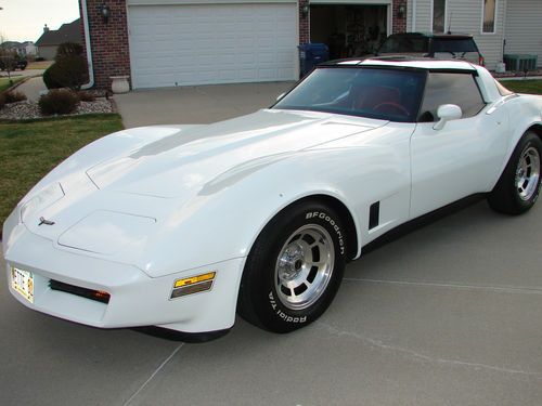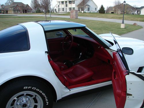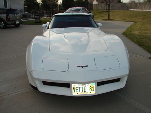 1981 CORVETTE WITH 25,708 ORIGINAL MILES. THIS CAR IS 32 YEARS OLD AND IS IN EXCELLENT CONDITION. IT IS OBVIOUS THAT IT HAS BEEN GARAGED AND WELL CARED FOR ITS WHOLE LIFE. IT HAS NEVER BEEN DRIVEN IN THE RAIN SINCE I HAVE OWNED IT, AND THE PREVIOUS OWNER MAINTAINED THE SAME. ABSOLUTELY NO FRAME OR UNDERCARRIAGE RUST. THE 350 V-8 RUNS GREAT AND TRANSMISSION SHIFTS PERFECT. PREVIOUS OWNER HAD REMOVED THE CATALYTIC CONVERTER BUT I HAVE IT. THE POWER ANTENNA WAS REPLACED BUT I ALSO HAVE THE ORIGINAL. SINCE I HAVE HAD IT I HAVE PUT A COMPLETE $1,200 STAINLESS STEEL BRAKE UPGRADE ON THE CAR 500 MILES AGO ALONG WITH SILICONE BRAKE FLUID, A NEW POWER STEERING SLAVE CYLINDER, ALL NEW MOTOR MOUNTS, AND NEW SHOCKS. THE CAR HAS THE VIN ETCHED IN ALL THE GLASS TO PREVENT THEFT. WINDOWS HAVE BEEN TINTED. IT HAS FACTORY AIR CONDITIONING, POWER BRAKES, POWER STEERING, GLASS T-TOPS, RED LEATHER INTERIOR, TILT, CRUISE, POWER WINDOWS, POWER LOCKS, FACTORY ALARM SYSTEM, FACTORY ALLOY WHEELS, AND FACTORY AM/FM CASSETTE RADIO. IT COMES WITH A COVER AND A FRONT BRA. I PURCHASED THE CAR 7 YEARS AGO IN MEMPHIS, TN. I BELEIEVE THAT I AM THE CARS FOURTH OWNER. INTERIOR LOOKS LIKE BRAND NEW INCLUDING THE FLOOR MATS. THE PAINT IS 32 YEARS OLD AND HAS JUST STARTED TO SHOW SOME AGING BUT IS VERY, VERY, VERY, GOOD. IT HAS ONE BONDING SEAM FATIGUE CRACK ON DRIVERS FRONT FENDER ABOUT 2 INCHES LONG. IF YOU KNOW YOUR CORVETTES THIS IS COMMON AND EASILY FIXED. IT IS ORIGINAL AND UN-RESTORED. ON A SCALE OF 1-10 I WOULD RATE THIS CAR A SOLID 8.5 TO 9 FROM ONE FOOT AWAY. IT DOES NEED THE AIR CONDITIONING CHARGED AND THE CRUISE CONTROL MAY NEED ADJUSTING. WHY AM I SELLING IT....I AM A PRIVATE PILOT AND WISH TO INVEST THIS MONEY IN MY PLANE TO UPGRADE AVIONICS. ANY QUESTIONS FEEL FREE TO CALL. PRIVATE PARTIES ONLY NO DEALERS PLEASE. YOU WILL NEED TO PICK UP THE CAR IN PERSON AS I WILL NOT SHIP IT. I HAVE HEARD TOO MANY HORROR STORIES ABOUT DAMAGE WHILE IN TRANSIT. I WANT YOU TO SEE WHAT YOU ARE GETTING SO THERE ISN'T ANY CLAIM OF MISREPRESENTATION. WHEN YOU ARRIVE TO PICK-UP THE CAR IF YOU ARE NOT SATISFIED WITH IT FOR ANY REASON, YOUR DEPOSIT WILL BE REFUNDED 100%. IF YOU WOULD LIKE TO DO A PRE-PURCHASE INSPECTION YOU CAN CALL ME TO ARRANGE. THE CAR IS LOCATED JUST OUTSIDE OMAHA, NE. I CAN BE REACHED @ #402-894-5357 AND ASK FOR TOM. IF I AM UNAVAILABLE, PLEASE LEAVE A MESSAGE AND I WILL RETURN YOUR CALL. THE CAR IS BEING OFFERED FOR SALE LOCALLY AND I RESERVE THE RIGHT TO END THIS LISTING AT ANYTIME IN THE EVENT OF SALE.