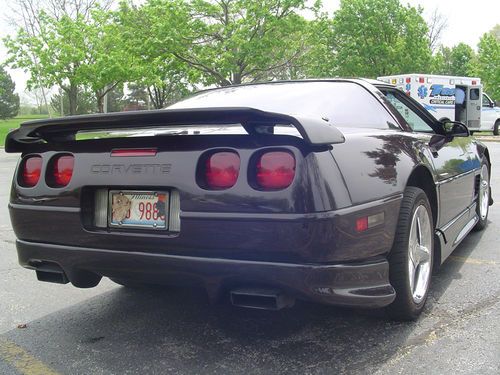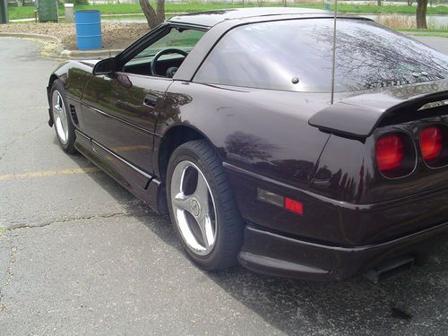 This is a 1985 Corvette. The body kit and 1990 bumpers were add about seven years ago when the car was repainted. The paint is 1990 Corvette Black Rose. It looks purple during the day and black at night. There is some damage on the hood. The left front where the hood meets the bumper. The right rear hood and front of the passenger door. No fiberglass damage just paint. Transmission was rebuilt last summer it has about 300 hundred miles on it. The weather strips and carpet have been changed. The stereo is an Apline cd player with ipod hook up and a bass tube in the back. There is a new steering wheel. All gauges work including the led dash. The front steering rack ball joints and all the shocks have been changed. I also changed the rotors to crossed drilled. I also have the hard top along with the glass top that goes with the car. The rear window has old tint on it that is faded. I have not gotten around to taking it off. It is a great driver looks good sounds really good. I really don't want to get rid of the car but I am losing my garage and don't want to leave it outside. I have other pictures I can email and can answer any questions that you may have.