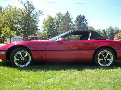 Beautiful Red Corvette Convertible the top is 4 years old and still looks new. A 5.7 liter Tuned port injection L-98 V-8 engine that runs great. It has American Racing Mag wheels and BF Goodrich tires that are less then 2 years old. The Red Carpet, the black door skins and black leather seats with red stitching have all been replaced over the last three years and are new. This Vette has many little extras like the mahogany and leather steering wheel,the corvette flame hood graphics, and the Kenwood stereo system making it a real beauty. This is not a show car it is driven I just kept in the garage and cared for. If you have any questions please feel free to contact me and I will try to answer them. I have owned this Corvette the last 5 years and it's been a fun driver with great power. $500.00 deposit required within 48 hours with balance due within 7 days.