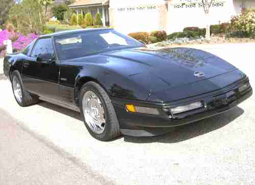 Up for sale is my 1991 CHEVROLET CORVETTE ZR-1 with the original/stock LT5 engine and original/stock ZF 6-speed manual transmission. It is black on black, sold new in California and has always been garaged here (it has had 3 So Cal owners). I am including the ZR-1 owner's box, original window sticker, manuals, books, etc. Car has 149K miles and also has both the black and smoked targa tops (I believe this was the only available option). Windows are tinted, has a radar detector, and the ZR-1 rims have been chrome plated. The gauges all work fine and the A/C blows cold. The only mods to the engine are a K&N air filter, a Borla cat back exhaust, and a Gulstrand performance chip...all are 50 State smog legal. As with all ZR-1'S, the car is fully optioned from the factory. It has been a daily driver (6-7K miles per year)...paint and body are excellent, runs excellent, clean Carfax history. I have the maintenance/repair receipts which will go to the new owner (radiator, water pump, clutch, starter and alternator have been done along with other misc). Clear title/current registration in hand. First $12500. If you have any questions, call Mark at 858-ninefourfive-8781 from 10AM till midnight is fine (PAC TIME ZONE IN CALIFORNIA...3 hours earlier than East Coast time)...Thanks and good luck.