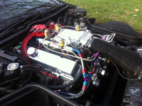 mods done to the car. professionally build 396sb with about 4k miles on it. built in 2006 eagle forged crank 3.875 stroke lunati promod rods 6" bowtie 4 bolt block slp forged pistons 4.030 bore brodix m2 215 cnc ported heads 11.5/1 cr. comp cam solid roller 252/260 112lsa 620/620 lift probe shaft rockers 1.5 ratio comp cam cs .300 solid roller tappets custom made efi intake. made by jeb. 52mm tb holley 42lbs ford injectors tpis headers, y pipe, random tech cat, corsa exhaust(not too loud) fast xfi f/i system mccloud twin disk clutch 3.91 rear axle ratio. hardened outer shafts on rear axle aero fuel system rated for 1000hp -8 line all braided bilstein sport shocks (new 2 years ago) nitto 555r dot road race tires almost new. z06 rims . msd digital 6 ignition msd crank trigger hurst shifter hurst roll control msd shift light auto meter fuel pressure gauge. cross drilled rotors w/ hawk brake pads driveshaft loop. new rack and pinion 2 years ago. pioneer cd deck, 4channel amp, pioneer speakers. sounds great. 5 point roll cage and 5 point race harnesses. NHRA legal to 10.0 custom 2 stage nos system all contolled by the fast xfi. on the dyno. 480 rwhp n/a 635 rwhp 1st stage nos 780 rwhp 2 stages , the air fuel was slighty rich at 10.5/1 with c16 fuel. i have only used the second stage 1 time on the dyno. the nitrous is now setup just the first stage. im sure there are a bunch of items i forgot. feel free to contact me with any questions. |