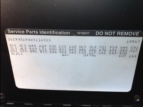 1968 chevrolet corvette convertible #'s match 327 auto ac ps pb pw (tank sheet)