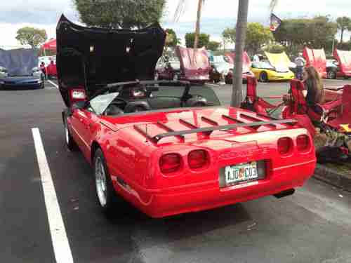 Opportunity to purchase a low milage, 3 owner 1994 Corvette convertible in excellent condition. Owned by a Corvette enthusiest and driven very little... under 76,000 miles in total or less than 4000 miles per year. Needs very little to achieve an NCRS Top Flight award. Paint is very good... conservatively 8 / 10. There are a few chips and a one inch scratch by the rear wheelwell. Interior is also very good 8 / 10 with some wear on the drivers seat and the power drivers seat motor sticks when tilting (fine when moving forward and backward). Original floormats in excellent condition are included. Touch screen Pioneer head unit is installed, but original working unit is included. Power antenna sticks at about 6" from fully retracted position. Tires have approximately 80% tread left. The car runs close to perfect; AC blows ice cold, tranny shifts smooth and fast and I would not hesitate to drive it from its home in Fort Lauderdale to San Francisco and back.