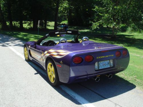 1998 Chevrolet Corvette Indianapolis 500 Convertible New tires and brakes!!! This car is sure to turn some heads and is a great vehicle for driving in parades or just running around town. After all, only 1,158 of these were produced. It is in very good shape and has been pampered for the 6 years I have owned it. I have added the following upgrades to the car during my ownership: 1. Baer Brake Rotors and Pads ***Less than 1,000 miles on these brakes*** 2. Bissani Xpipe 3. Corsa Stainless Dual Tip Exhaust 4. Extra Matching Yellow Interior Trim 5. Dual Cone Air Intake 6. Dual Sport Hoops in Chrome 7. Goodyear Eagle F1 Supercar Tires ***Less than 1,000 miles on these tires*** 8. Factory Set of Service Manuals 9. Most of the Original Parts This Corvette Convertible is powered by GM’s all-aluminum LS1 V-8 with 345 potent horsepower, 6-speed manual transmission, Dual stainless steel exhaust, Limited slip differential, Rear-wheel drive. The car is excellent mechanical shape and has been lightly driven. There is plenty of tread left on the tires and the interior and exterior are both in very good shape. The car has been regularly maintained and drives like a dream. I am not in a financial situation where I have to sell it so any lowball offers will not be accepted. Please contact me through Ebay with any questions or concerns.