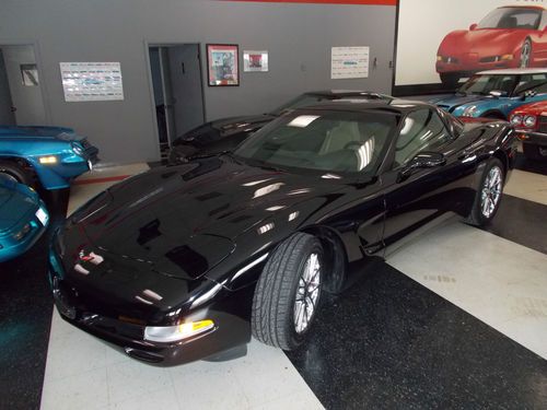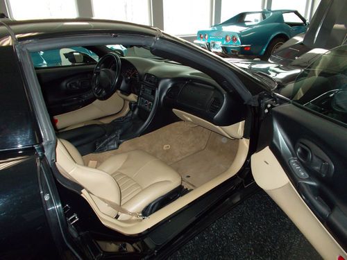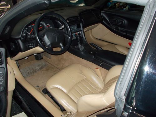 For sale is this beautiful black coupe Corvette it is equipped with a 6 speed manual transmission. Car just turn 50,000 miles. Car has the heads up display feature, tan leather interior, and the Delco BOSE stereo with single disc CD player. It also has Z06 style "Spyder" wheels. Car also has the removable roof panel.