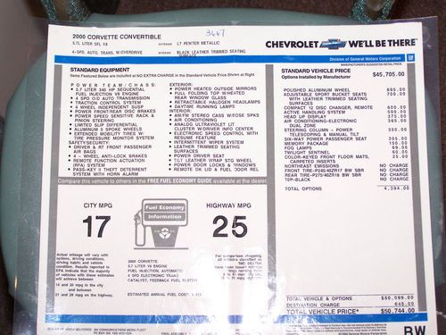 I'm selling my well maintained 2000 convertible. It has just over 27,000 miles. It was an Arizona car until 2011. In addition to the standard equipment it has the following options: polished aluminum wheels, leather "sport seats", 12 disc CD, active handling system, head up display, dual zone AC, power telescoping steering column & manual tilt, six way power passenger seat, memory package, fog lamps, twilight sentinel, and floor mats. It has new "Michelin Pilot "run flats".