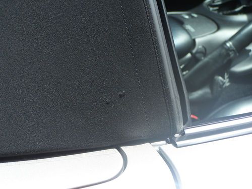 I have included photos to show the cosmetic flaws: "pinch marks to fabric of top, surface wear on side of console where my leg rubbed. The interior is in excellent condition. There are no water leaks. I changed the oil at regular intervals with "Mobil 1". It is stored winters. I installed "Euro" tail light lenses, and the amber side marker lenses. It has a padded partition between the trunk and passenger compartment. The red fender stripes are vinyl.