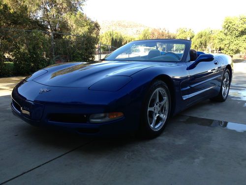 2003 Corvette Convertible 50th Anniversary. 2nd owner, runs great, looks great, fun car to drive, automatic, great mileage getting 26 mpg hwy, heads up display, traction control, multi disc cd player. Everything stock. Drivers seat has a tear. Scratch below right tail light .Mileage 93,905. Clear California title. Please email with any questions before bidding. This vehicle is being advertised locally, I reserve the right to cancel the auction if sold.