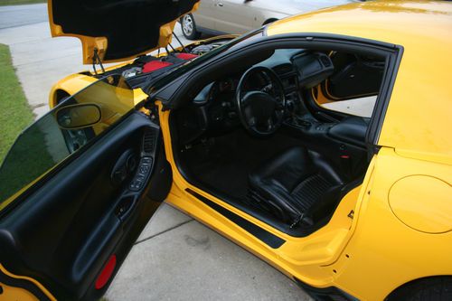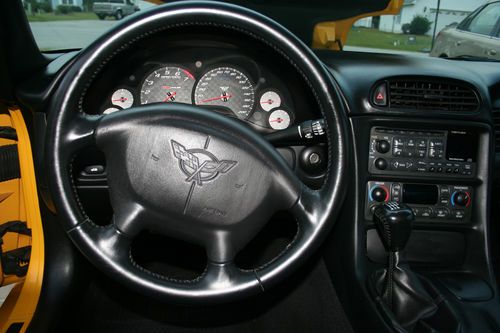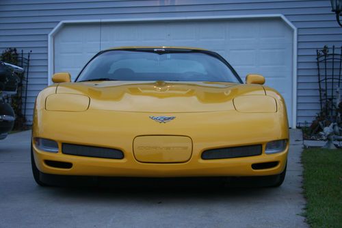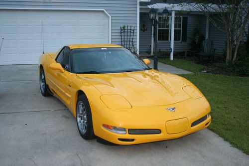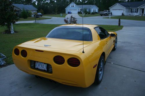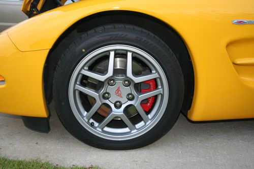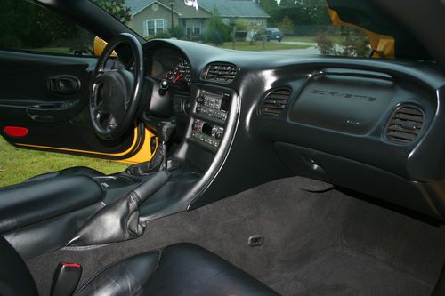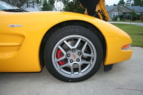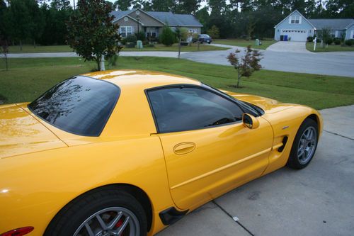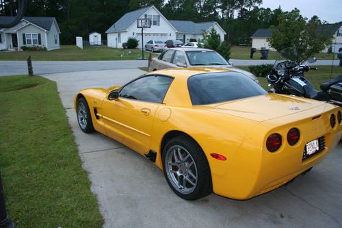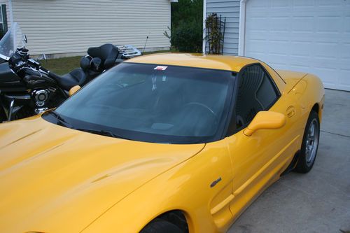 Millenium Yellow Z06, garage kept, low mileage, ALL ORIGINAL, never wrecked. Also have the 2003 Corvette Sales Brochure with CD, owner's instructional CD, original window sticker, and a 2003 copy of Corvette magazine; all of which make a stunning collection for showing, if desired. Car has professionally tinted windows and black louvers over taillights and license plate lights. Tires have about 90% of life left. Paint is glossy, and I know of no obvious defects (ie, scratches or chips).