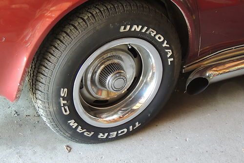 Transverse fiberglass rear leap spring,- 4 Tires Tiger Paws with 75% trend left,- 4 New brake caliburs,- 4 Brake rotars 2 years old,- Master Clinder for brakes 1 month old,- Brake pads 80% wear left,- Rebuilt rear differentional rebuilt,- 3.92 Posi, 3 years old,- Drive Shaft U joints replaced 3 years ago,- Jack Shaft U joints replaced 3 years ago,- Auto Tranny rebuilt 2BM specs 3 years ago,- Chevy Engine 3Quarter race cam with roller tapids bored and stroked 3 years ago To A 383 Cubic Inches,- About 4,000 miles on engine,-Dist. Summit electronic racing,- Hyper Fye Electronic ignition box with RPM control,- Carburation is air gapped manifold with 2 500 4 Barrels on progressive linkage,- A.C. upgraded this year from R12 to R134A, New Hoses, New Compresser, New Condensenor, And new RID Valve,- 4 new shockes.,- Exhaust headers with Chrome Side pipes,- Interior painted tan,- Needs Exterior paint job.- Minor Scratches repaired.- May not meet state emission requirements, Licensed As A Collector Car.