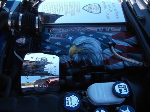 You are buying a beautiful 2005 chevy corvette with only 8k original miles one of the lowest mileage cars this year on ebay , this car is driven to car shows and thats it , this car has been a spotlight at many shows with its custom painted engine work and actual piece of marble from the twin towers incorporated under the hood a tribute to 9/11 may we never forget, a sure trophy winner , brand new tires were just installed only 50 miles ago color of car is lemans blue premium color , NEVER seen rain or snow very very well kept , this car wont last a must see in person .Joe 516 849-2465