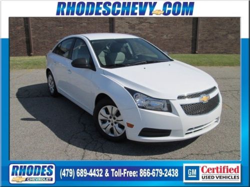 Check out this gently-driven, low mileage GM Certified 2012 Chevrolet Cruze LS. If you really need a vehicle that gets great gas mileage for a very long daily commute, this is an excellent buy. Feeling safe and secure is important for you and your family. This Cruze will provide you with both. With Side and Rear Airbags, it's great to know that the protection is there. Even better if you never need it! Be an informed buyer when making this purchase, it includes a CarFax Title History report. Call today to schedule your test drive Here at Rhodes Chevrolet we appreciate every opportunity to earn your business and we will prove it to you. With over 75 years of history behind us, you will see why we say: Rhodes Chevrolet "Since 1934...Your Lifetime Chevy Dealer!"