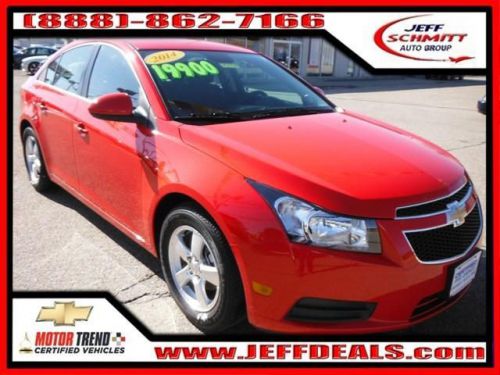 Don't pay too much for the attractive car you want...Come on down and take a look at this outstanding 2014 Chevrolet Cruze. GM Certified Pre-Owned means you not only get the reassurance of a 12mo/12,000-Mile Bumper-to-Bumper limited warranty, but also a 2yr/24,000-Mile Standard CPO Maintenance Plan, up to a 5-Year/100,000-Mile, $0 Deductible, Fully Transferable, Powertrain Limited Warranty, a 172-point inspection/reconditioning, 24/7 roadside assistance, Courtesy Transportation, 3-Day/150-Mile Customer Satisfaction Guarantee, 3 month trial OnStar Directions & Connections Service if available, SiriusXM Radio 3mo trial if available, and a vehicle history report. Valued for its fuel economy.