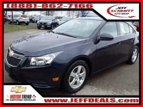 Wow! What a nice smaller car. This handsome-looking and fun 2014 Chevrolet Cruze has a great ride and great power. I really enjoyed driving it. It's very clean, almost new, and really fun to drive. This Cruze pegs the smile-meter, keeping you grinning every moment you spend behind the wheel. GM Certified Pre-Owned means you not only get the reassurance of a 12mo/12,000-Mile Bumper-to-Bumper limited warranty, but also a 2yr/24,000-Mile Standard CPO Maintenance Plan, up to a 5-Year/100,000-Mile, $0 Deductible, Fully Transferable, Powertrain Limited Warranty, a 172-point inspection/reconditioning, 24/7 roadside assistance, Courtesy Transportation, 3-Day/150-Mile Customer Satisfaction Guarantee, 3 month trial OnStar Directions & Connections Service if available, SiriusXM Radio 3mo trial if available, and a vehicle history report.