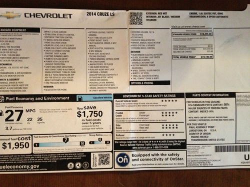 2014 Cruze Ls, 7k Miles W/dealer Installed Cruise Control Low Miles, Warranty on 2040-cars