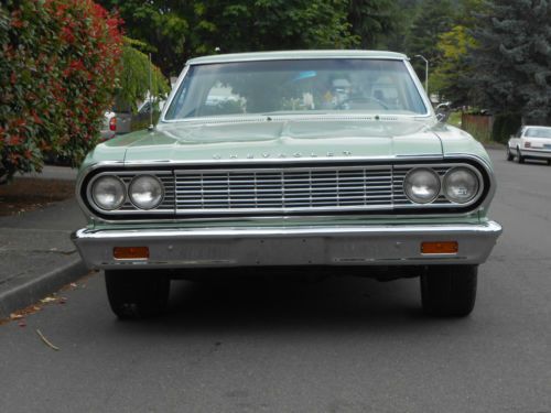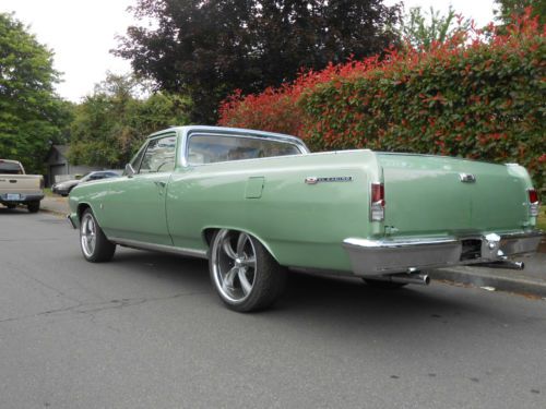 1964 CHEV EL-CAMINO- FRESH BASE CLEAR PAINT-NEW INTERIOR,DOOR PANELS,DASH PAD,SEAT,ARM RESTS, CARPET,(FAWN),DASH BEZEL,FRONT AND REAR BUMPERS,ALL FRONT GRILL AND PARTS NEW--350 MOTOR AND 350 TRANS-APPROX 20K ON BOTH, DUAL EXHAUST, RUNS AND DRIVES GREAT,CUSTOM SILVER LEAF STRIPING, BOSS WHEELS 18 ON FRONT AND 20 ON REAR WITH NEW TIRES, BED HAS BEEN LINED, NO AUDIO,DIDNT WANNA CUT UP NEW DASH BEZEL ,HAS NEW PASSENGER AND DRIVER FLOOR PANS, REST WAS SOUND,(NOT A BONDO BUCKET),, NO TRADES!!!! SALES TO LOWER 48 ONLY!!! ????? CALL LARRY 503-516-4886 (SERIOUS) OFFERS CONSIDERED