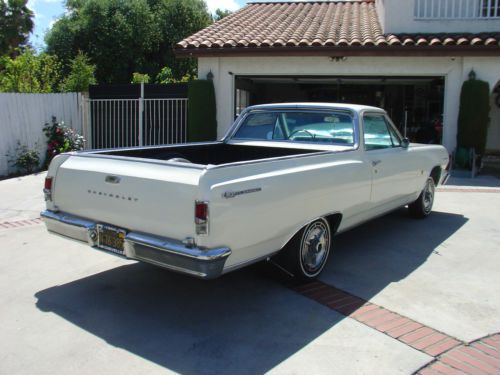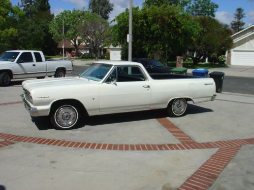 Up for sale today is a nice original california 1964 Chevy El Camino in a corona cream color. Car has the original 327 engine that runs excellent with a powerglide tranny. Engine runs great fires up right away, no shaking, no noises, no smoke runs perfect and idles nicely. A set of 4 brand new tires. Paint is in great shape has a couple small chips and scratches here and there from being driven. This el camino has also been here in Southern california its entire life so undercarriage is clean and rust free still has the original BLACk california plates on it. it has all new door weatherstripping around the doors, and also the window felts are also all new, All lights and guages work on the car. It has power steering and power brakes. The interior is in excellent shape, the door panels, dash, and headliner are all original only the seat has been redone. Car is being sold As-Is with no warranty and is the buyers responsibilty to check car prior to bidding. Car is Located in Los Angeles and has a clean title in hand. I have sold a couple cars to overseas buyers and out of state buyers in the past and can offer to deliver the car to any of the shipping companys here in southern california or can give you the numbers to a few shipping companys ive used many times with no issues. Most of my cars end up selling before the auctions even end so i have the right to end the auction early if the car sells locally.