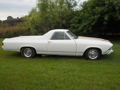 This is a restored 1967 El camino. There is 3000 or fewer miles on the engine/transmission. It has a 330 possy rear end, 4 speed manual transmission, all parts are new. This was a factory air car but is missing the compressor and condensor. The frame is in great shape and does not have the rust on the frame that is common. The wheels and tires are new they are crager wheels as seen in the pictures.