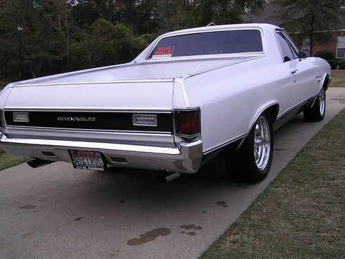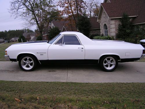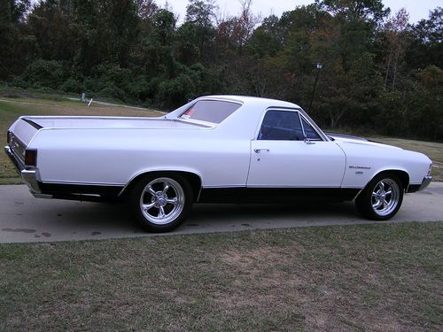 This 1971 Chevrolet El Camino is well equipped with a strong 350/350 combination. The front suspension has been completely rebuilt with new parts. It has a rebuilt 12-bolt positraction rear-end with Moser axles. The interior has been completely restored. It has many custom touches and shows well. It drives and rides great. I have installed dual exhaust with a crossover and Magnaflow stainless steel mufflers for a killer sound. This is a sound and reliable vehicle that is always a pleasure to drive. Please note that this vehicle is an Alabama classic vehicle (prior to 1974) and in this state, similar to some others, there is no title, just a registration and bill of sale (Code of Alabama Section 32-8-31). You can obtain a title for it in your state if you are not an Alabama resident, just contact your state DMV for requirements. If you would like additional info about this vehicle you may contact me at (334)224-0434. This is an straight up sale, no trades please.