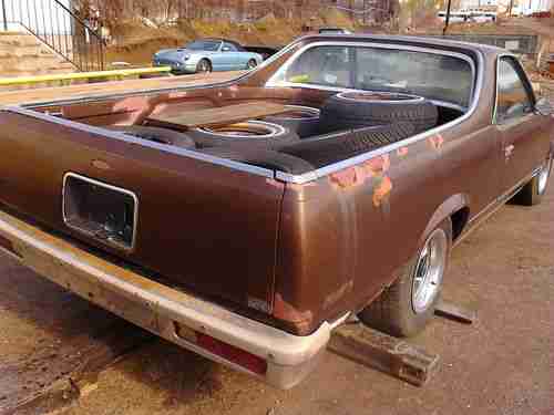 1978 EL CAMINO 69,364 MILES APPEARS TO BE ACCURATE BUT NOT SURE. V8, A/C, COMES WITH EXTRA SET OF 4 FACTORY RIMS, REAR FLOOR PAN NEEDS TO BE INSTALLED, BEHIND DRIVER SEAT BOTTOMS OF 1/4 PANELS ROTTED. NEEDS COMPLETE RESTORATION. RUNS AND DRIVES BUT MUST BE TOWED.