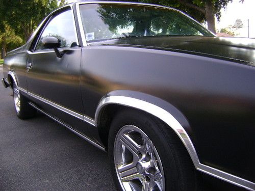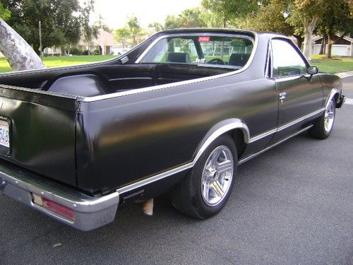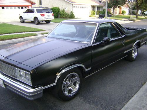 Up for auction is my 1981 Chevy El Camino. This vehicle is in good overall condition. I will describe is in detail to the best of my ability if there is anything I leave out that is of importance to you, please call or email before placing a bid. Please treat this auction serious! The MECHANICS..... Runs great. Has a rebuilt 350 and rebuilt transmission. Both have around 15K miles on them and were both rebuilt at the same time. (reciepts included) Motor and transmission are in excellent condition. Has a new altenator as well, new brakes, new hoses. The suspention is in great shape. The power steering box has a very slight leak. The alighnment is very straight. This is a daily driver and runs great. Tires have at least 50% tread on them. The steering is tight and feels good. Stock exaust. The EXTERIOR.... The paint is brand new. Was painted last week (reciept included) The body is in good shape. The body is not perfect however. There are dings in the body here and there throughout the whole car. From 3 feet away it looks perfect, up close you will find imperfections (nothing major, see pics) There is no rust at all. Has a front end from a 1985 El Camino and it is in excellent condition. The chrome bumpers are in great shape. All of the trim is in good shape. Drivers side strip is missing (see pics) Has nice Iroc wheels and they are in good shape. The INTERIOR... The entire interior is in very good shape for the exception of the dash (has some cracks) The rest looks very good. Door panels, carpet, seats, headliner, everything is in good shape. No tears or rips or noticable stains. The ELECTRICAL... All of the lights work great. All of the gauges work great as well. The blinker handle is broken. The is in radio. The registration is current through 2014 and clean title in hand. In state buyers will have a current smog cerificate as well. Overall this is a great running El Camino that looks good. Not showroom by any means and does show inperfections, but very decent..... This is a no reserve auction. Highest bid will win. Again please treat this auction serious. I want a smooth transaction. If there is anything I have left out please ask before bidding. Do not bid unless you have the funds available now. Do not bid if you have 0 feedback. Payment is due in full with 3 days of close, no exceptions. Any questions please email or call me at 909 810 7501..Please call me as soon as the auction ends. Thank you, and happy bidding!