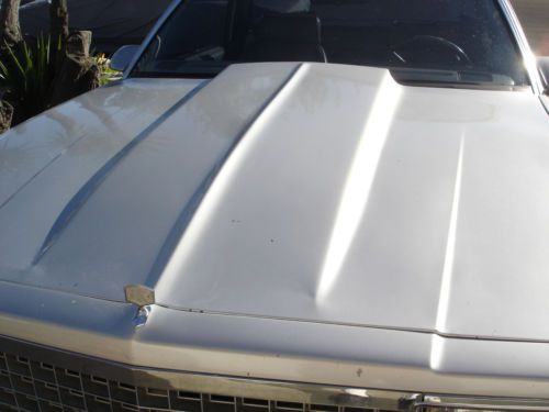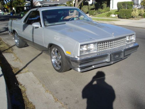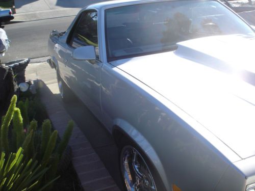 1984 EL CAMINO SS 454 MOTOR, THIS CAR IS FAST METAL COWL HOOD DASH CAP . NEW WINDSHILD CARGO RAILS NEWER TIRES 4 18 RIMS 18 INCH BMS SHIFTER NICE PAINT HEADERS CAM CARGO RAILS NICE BUMPERS WITH STRIP VERY NICE MOLDINGS POSI REAR END HAVE 400 TURBO TRANY SUEDE SEATS COATS DOOR PANELS AND HEAD LINER. THIS CAR IS VERY FAST. COME WITH CASH AND MAKE YOUR BEST DEAL, NO EMAILS ASKING WHAT IS YOUR BOTTOM B & M SHIFTER, BUCKET SEATS. 400 TURBO TRANSMISSON SUEDE BUCKET SEATS DUEL FLOW MASTER TAIL PIPES, AND 2 1/2 PIPES HOLLY CARBTHE MOTOR LOOKS LIKE IT WAS INSTALLED LATELY VERY FASSSSSSSSSSSSSSSSSSSSST, LIKE BULLET JUST THE MOTOR COST 5000.00 DOES NOT HAVE CALIFORNIA SOMG THIS CAR HAS NOT BEEN DRIVEN FOR 6 YEARS, HAS BEEN IN AND OUT SHOPS INSTALLING THE MOTOR TRANSMISSION AND REAR END. TRANSMISSION HAS A LITTLE OIL LEAK FROM BEEN DRIVEN SMALL DENTS ALL OVER.CD RADIO HAS TO BE CONNECTED, SOME OF THE DASH GAGES NOT WORKING PROPERLY DUE TO THE AFTER MARKET OIL GAUGE. THE LOCKING RODS FROM THE DOOR HAS BEEN REMOVED FOR SAFTY THIS CAR IS SUPER FAST AND RUNS GREAT. SOME ONE WILL BE BUYING A VERY NICE CAR. LOTS OF MONEY WAS .INVESTED I THE POWER TRAIN YOU CAN CALL AND INSPECT THE CAR PLEASE CALL 818-920-0234. AND I WILL TAKE A TRADE