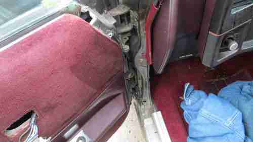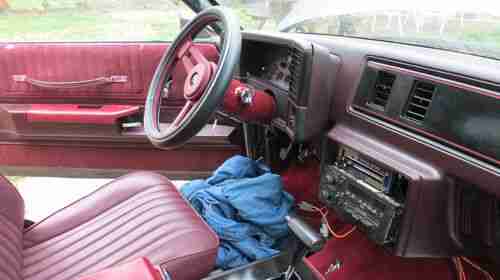 I FOUND A GUY ON CRAIGS LIST WITH BURGANDY SS MONTE BUCKET SEATS THAT ARE LEATHER LIKE THEY WERE JUST RE UPOLSTERED THEY ARE NICE , I PUT THE BURGANDY DASH OUT OF A SS MONTE IN IT WITH THE 115 MPH SPEEDO AND TACH THE GAUGES AND TACH ARE NOT WORKING DUNNO WHY BUT YOU SHOULD BE ABLE TO FIGURE IT OUT, I PUT NEW CARPET IN IT , DRIVER FLOOR PAN THAT NEEDS TO BE WELDED IN PLACE I HAVE IT SCREWED IN FOR NOW , I HAD A NEW WINDSHEILD INSTALLED IN IT FEW YEARS AGO, IT HAS 4 NEW B.F.GOODRICH G FORCE TIRES MOUNTED ON ALUMINUM G.M. 15 INCH RIMS 80s Z 28 OR SS MONTE THEY LOOK GOOD .