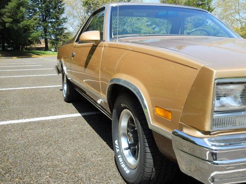 This El Camino is in beautiful cond. and runs well. I have owned this truck for over 10 years. 77K orig. miles. the motor and tranny are leak free. the motor uses no oil between 3K oil changes. I have all manuals and lots of receipts. truck has been in Oregon all it's life. it is completely rust free. it has one good repaint in orig. colors about 13 years ago. showing small paint chips. the inside of the bed shows some small dents. very nice interior. no rips, the dash is great. no cracks. the headliner has loose areas. new TA tires,brakes and air shocks. the option list includes 305 V8, 200R4 auto/OD tranny, A/C,PS,PB,CC,3:08 Posi. rear end, tilt wheel, F41 sport suspension, PW,PDL, pulse wipers, 78 amp alt., D91 conqusita trim, gauge package, no tack. AC blows cold. converted to R134A. the oil pressure gauge pegs out some times. truck is completely stock. no mods. every thing works. clear title in hand. shipping is the buyers responsibility. inspections welcome.nonrefundable paypal deposit of $500. due at auction end. bank wire transfer for the balance due within 7 days of auction end. sold as is no warranty. for questions call bill at 503-364-2071 8am to 10pm west coast time. thanks.