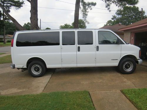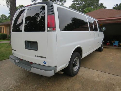 For sale is a 2001 Chevrolet Express 3500 15 Passenger Van in excellent condition (see photos). It has 3-Doors, 5.7L engine, uses Unleaded fueling and CNG Fueling. GREAT of fuel even better with both tanks full. Can ride on average 2 weeks before fueling when both tanks are full. This is a great buy and investment for any occassion: Family Vacations, Daycares, Churches, Transportation Business, and etc.. Happy Bidding!!!!!