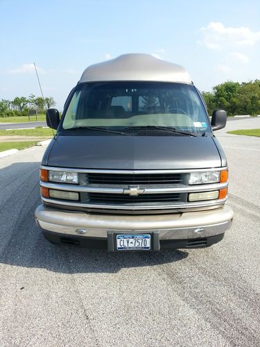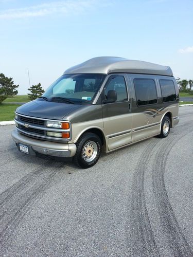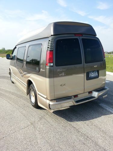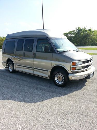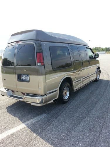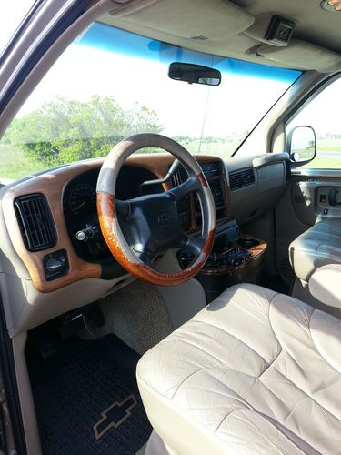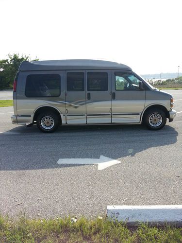 Up for sale is my Gorgeous 2001 Chevrolet Express G1500 High Top Conversion Van with only 76K miles, powered by V8 automatic transmission. My Van is designed to seat your entire family comfortably and safely. It carries 7-8 passengers. It is in beautiful condition, drives and looks like new. It looks gorgeous with double-tone paint Brown and Beige and with beige leather interior. It comes equipped with various luxury options such as: AM/FM/Cassette/CD Audio System, with Rear Speakers, and TV/VCR entertainment Package, Rear Heat and Air Conditioning, Cruise Control and Tilt Steering Wheel, also comes with a Power Reclining Sofa-Bed. Comes with upgraded luxury leather seats in great condition, with no rips or tears. It is decorated by a wood trim and LED Lights all around the van. This van been very well taken care , engine is quiet and transmission is smooth shifts with no hesitations. all highway miles we drove to Disney World several times with no problems our children are now big kids and its time to sell the family van . It is a must to see!!! NO RESERVE HIGHEST BIDDER WINS