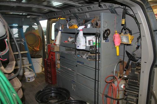 2001 Chevy Express 1 ton van with factory bin package and roof rack. Van has 101,400 miles, 8.1L V-8 Gas engine, and A/C. Van runs great and is in good shape with only normal wear and tear that comes with a work vehicle of this age. Both front and rear bumpers are rusting, but very little rust on van body. Vehicle has been well maintained and always kept in the shop when not on a job. I will include one extra set of steel rims (2) that I had for a spare set of tires. Van is still in service at this point so I will need a few days after auction to empty my tools and inventory out. Please email me with any questions you have at: mallj81@yahoo.com, thanks.