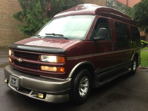 Gorgeous 2002 Chevrolet Express RV G1500 Southern Comfort Edition High Top Conversion Van with only 90K miles, powered by 5.7L/V8 engine that produces 245hp and 340 torque, automatic transmission. This Van is designed to seat your entire family comfortably and safely. It carries 7-8 passengers. It is in beautiful condition, drives and smells like new. It looks gorgeous with double-tone paint Burgundy and Gray and with beige leather interior. It comes equipped with various luxury options such as: AM/FM/Cassette/CD Audio System, with Rear Speakers, and TV/VCR entertainment Package, Rear Heat and Air Conditioning, Cruise Control and Tilt Steering Wheel, also comes with a Power Reclining Sofa-Bed. Comes with upgraded luxury leather seats in great condition, with no rips or tears. It is decorated by a wood trim and LED Lights all around the van. This van been very well taken care. It has no leaks anywhere, engine is quiet and transmission is smooth shifts with no hesitations. Transmission was just done comes with 2 year warranty. It is a must to see!!!