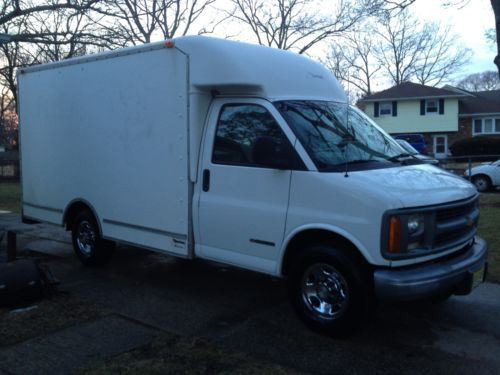 Selling my 2002 chevy express cutaway 3500 box truck... Runs great 5.7L V8. VORTEX ENGINE... Very good looking truck with chrome rims, very well maintained oil change every 3000 miles with Lucas ... 98k highway miles on motor and tranny, both were done at the same time...Single rear wheels 12' box with roll up rear door, body and box are in excellent condition, inspected until 2015.... a lot of new parts alternator, starter. Fuel pump, brand new radiator. Brakes and tires are good. Upper control arms are brand new on both sides, new wheel bearing all the way around. Brand new abs sensor on passenger side, new idler arms and pitman arm and bracket. Fresh oil chance and rear fluid and new gasket , truck runs nice and smooth the service engine light does flash on and off sometime I was told it a random misfire and may need new spark plug wires or tune up... But the truck runs so nice and smooth and the gas mpg's are better than ever so didn't get it fixed...only selling because I need a bigger truck now 16' box got more work which is a good thing for me. So if u need a nice box truck this is it!!! NO RESERVE !!! HIGHEST BIDDER WILL TAKE IT!!! $200 DEPOSIT ON PAY PAL AND BALANCE CASH IN PERSON !!