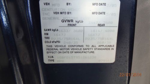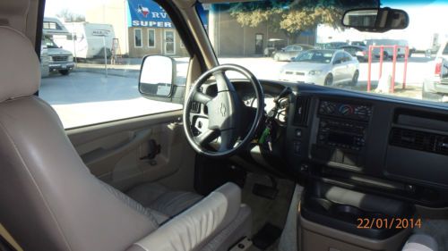 You are bidding on a clean 2005 Chevy conversion can converted by Centurion conversions. This van has plenty of room for 7 passengers to ride down the road comfortably. The van is powered by a Chevrolet 5.3L V8 engine with only a little over 117,000 miles on it. This van runs and drives fantastic and is ready for a cross country adventure. Your passengers will be entertained with a flip down LCD TV so you will not have grumpy passengers no matter how long the journey. The interior leather is very clean as is the carpeting. We are a RV dealership and are not experts in this type of vehicle so if I missed anything in my listing please feel free to call me anytime so I can answer your questions. Greg 817-907-1213