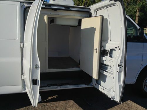 For sale is a 2007 Chevy Express 2500 Extended Cargo Van with only 65,924 miles. This vehicle is equipped with the 4.8L V8. All standard equipment, and clean leather seats. This van has the Thermo King V300 cooling unit on top, with a nicely insulated Container. This vehicle is perfect for meat service, catering, or a florist. This vehicle was in a rear end collision, with no structural Damage. Carfax report available reporting so. Send or text your email to (954) 682-9541 to receive a copy. Please contact Ron or Ron Jr. (954) 682-4868 Mon-Sat 11am-6pm est, or (954) 618-9541 Mon-Sun 3:30pm-8pm est. Thank You.
