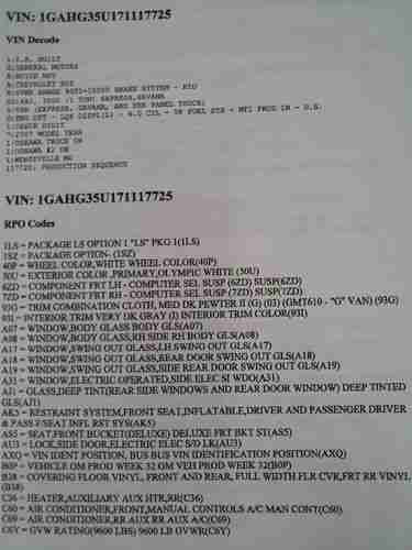 See factory build sheet pics….This is one owner vehicle, It was used to transport patients. The maintenance is up to date. Brakes and tires are good A/C is cold. This vehicle comes with a factory GM rebuilt transmission with 3 year 100K warrantee in the US.(Paperwork comes with van). Maintenance records since new. Buyer is responsible for setting up shipping and or shipping. This vehicle comes with NO warrantee other than the rebuilt transmission. Personal check or postal money orders only. Will release item when funds are available. Any questions call 305-793-4108
